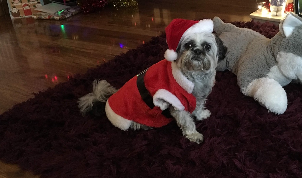 Yes, that really is Molly dressed as Santa, for the 0.21 seconds she tolerated the outfit for each year. The hat would go on and before anyone could take a photo she’d shake and despite the string holding it on it would spin around. This photo deserves some sort of award for the effort and risk to personal health that was involved in creating it. As a woof who isn’t keen on coats I can’t say I’m particularly looking forward to my turn in the hat this year.